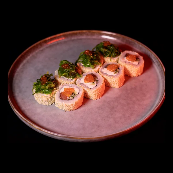 Норі, Рис, Крем Сир, Лосось Х/К, Огірок, Кунжут, Ікра Красна, Салат Хіяші